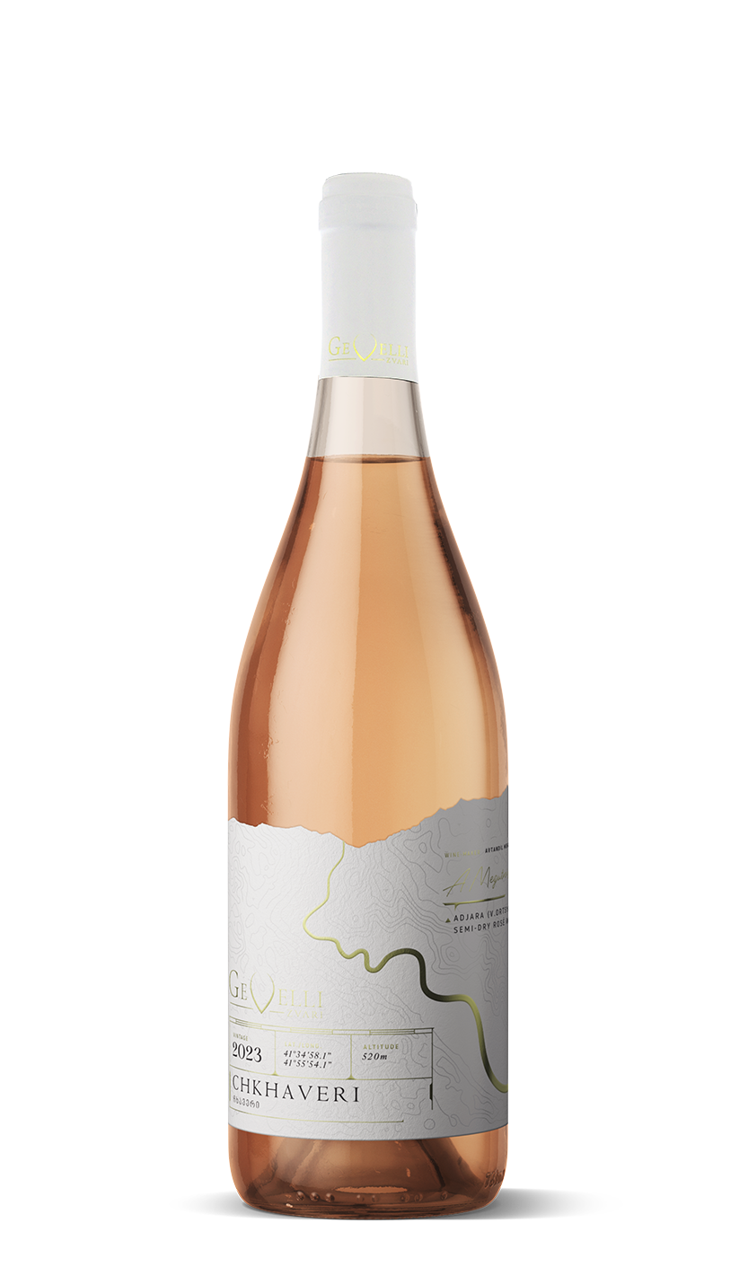 Premium quality semi-dry rosé wine made from a rare Georgian grape variety “Chkhaveri”, harvested in the mountainous area of Adjara region in late November. Distinguished by a light pink color, lively taste, sensual bouquet and soft aromas of red fruit, wild strawberries and citrus fruit. This is a semi-dry, highly acidic, lightweight, very long ending wine.
